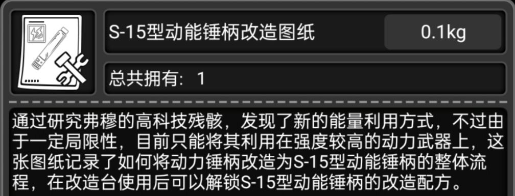 作用一:可在加斯特处鉴定出S-15型动能锤柄改装图纸(动力锤配件改造)