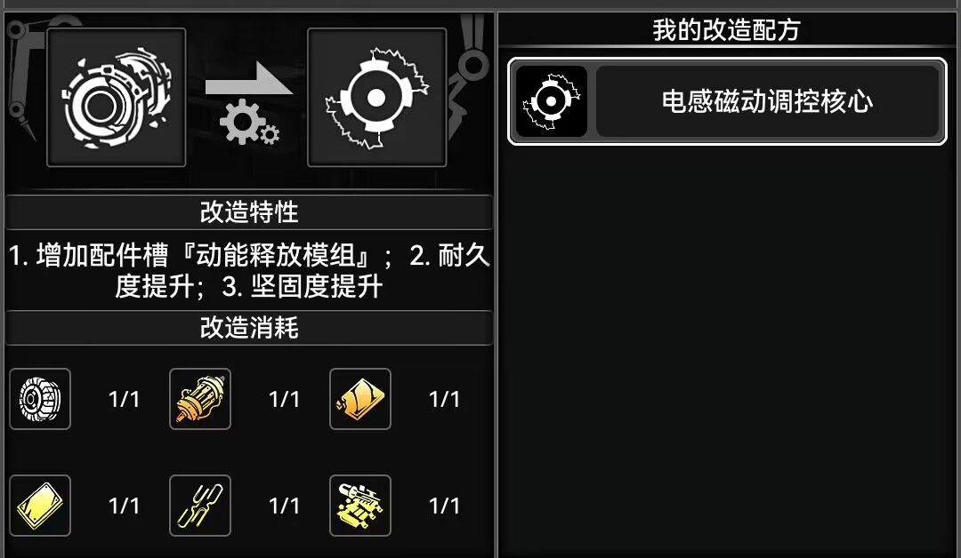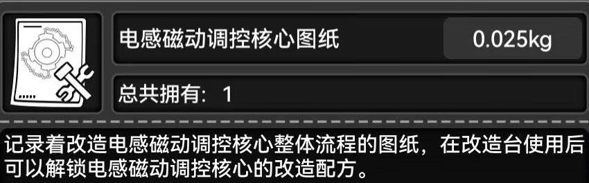 作用一:可在加斯特处鉴定出电感磁动调控核心图纸(动力锤配件改造)