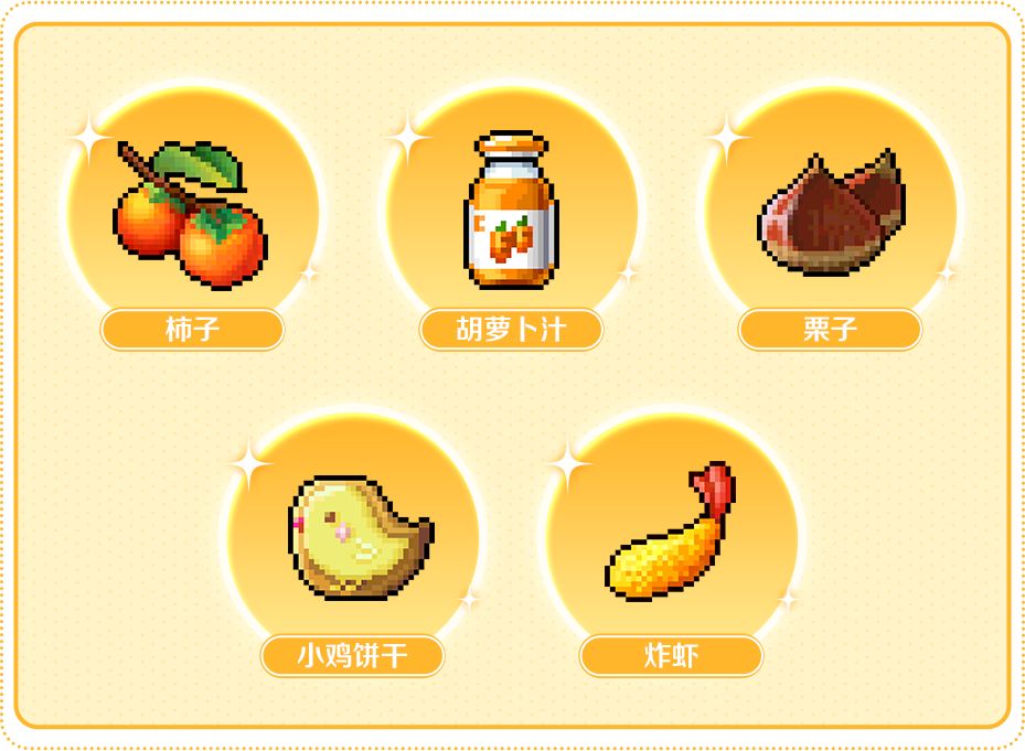 最好提前准备柿子、胡萝卜汁、栗子获得全面的攻击增益。有条件也可准备小鸡饼干、炸虾获得更强力的输出!