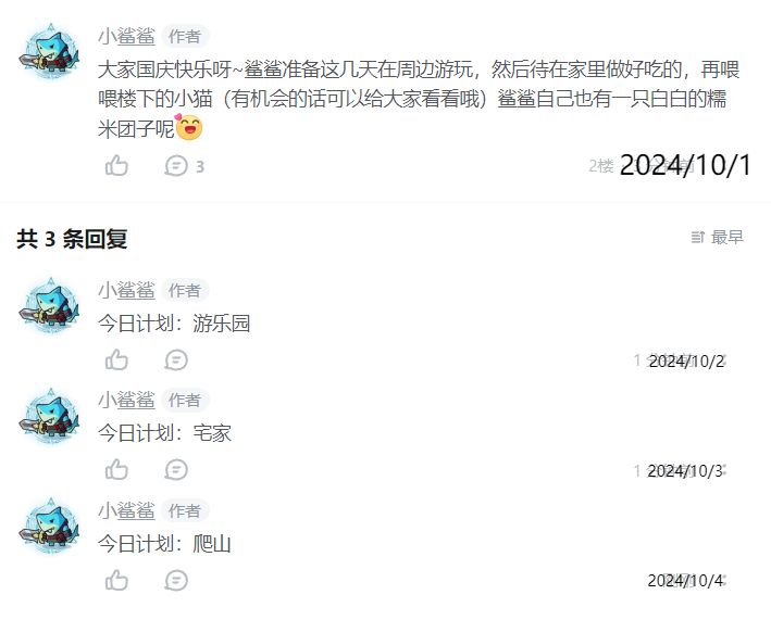 在此,鲨鲨邀请各位在下方评论区盖楼回复你的国庆出游计划并盖楼三天鲨鲨将从评论区中抽取符合活动要求的冒险家送出惊喜福利礼包~