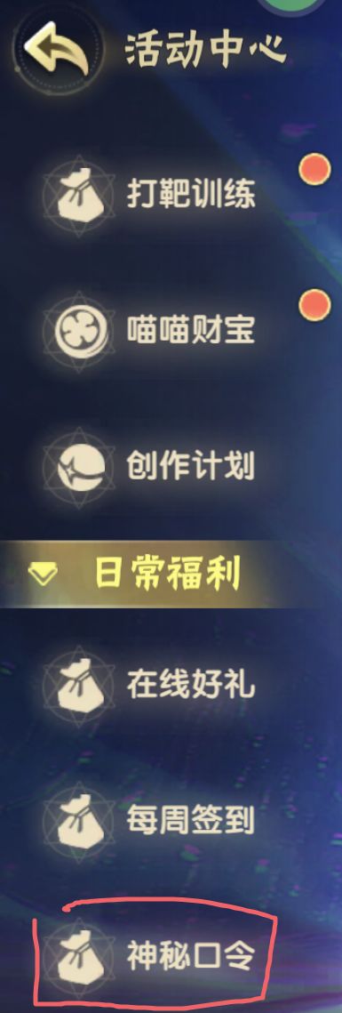 兑换礼包码的地方在活动中心里的神秘口令