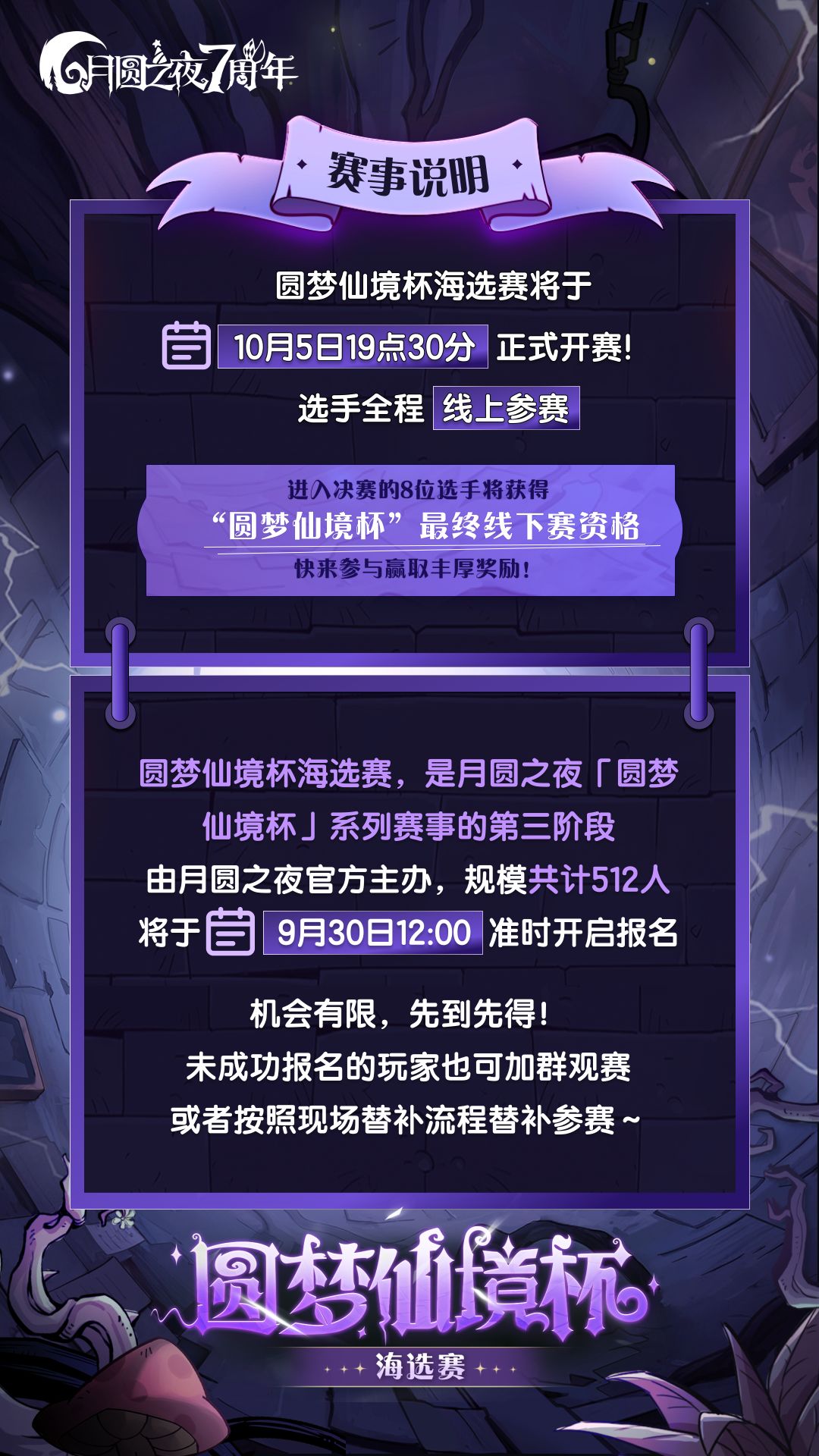 *本次海选赛规模为512人,已经获得线下资格的选手请勿重复报名,报名满员即止