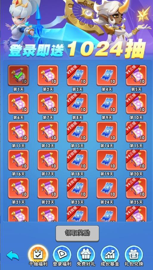 登录游戏,每日可领取抽奖券,累计可领1024抽!
