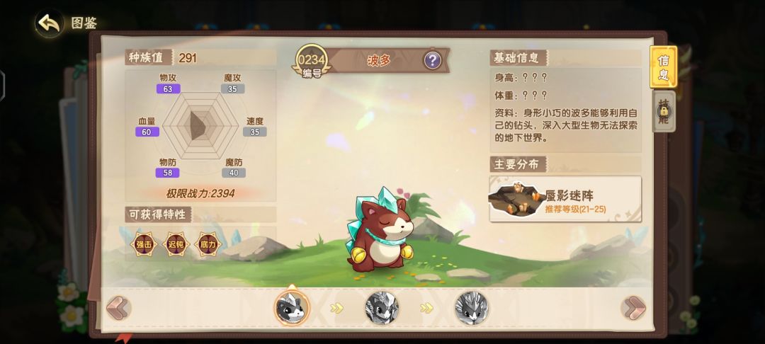 野外捕捉宠物前,可以点击对方查看个性,对于刷指定宠物个性及其关键,比如哈尼熊的遗志(公测之后大削弱,不仅带有仪式的捉不到,仪式还被拆分了,只能练到60级)