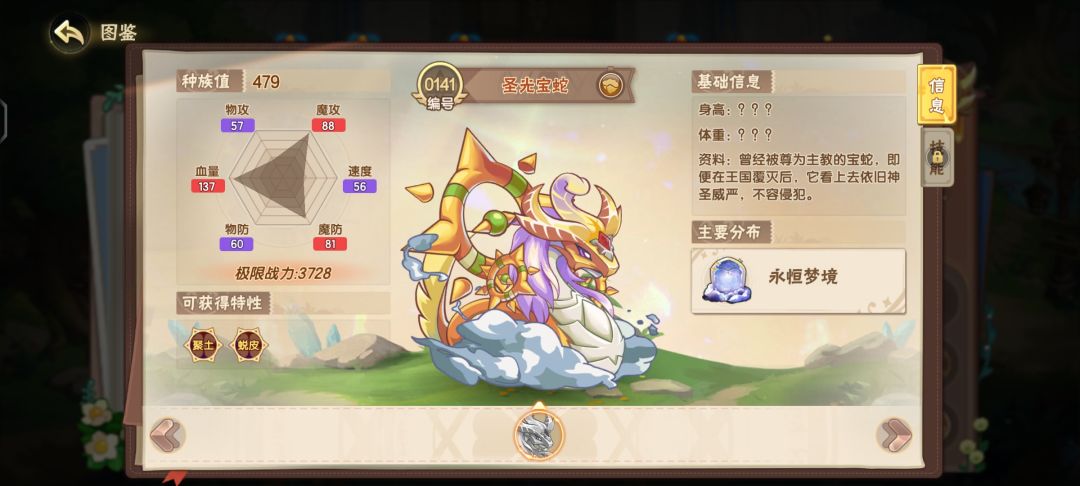 圣光宝蛇:地面系强攻手,打boss很好用,一般技能威压+大招可以发出高额伤害