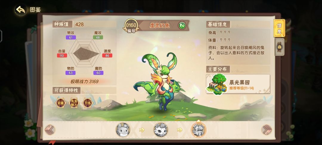 虚灵幻兔:特性先发制人和干练都可以,提高伤害测试期间作为草系输出精灵,公测后依旧可以作为克制输出手培养