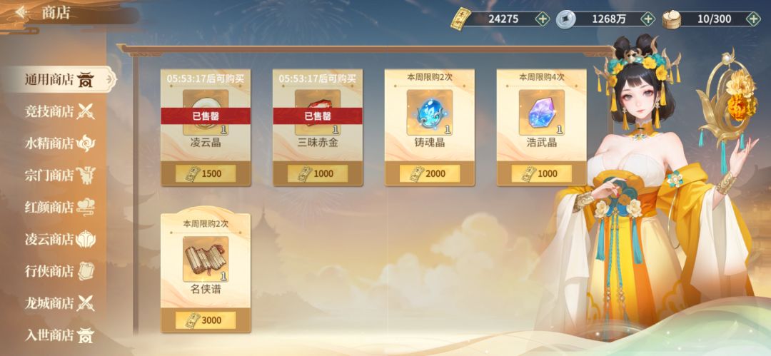 这周浩武晶和名侠谱都没有买,明天等着抽马蚕娘了,,