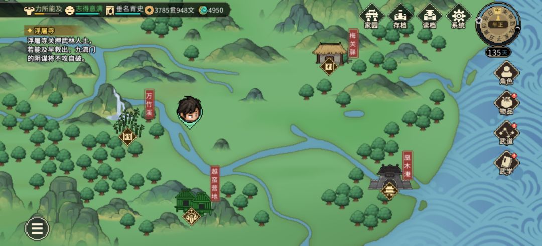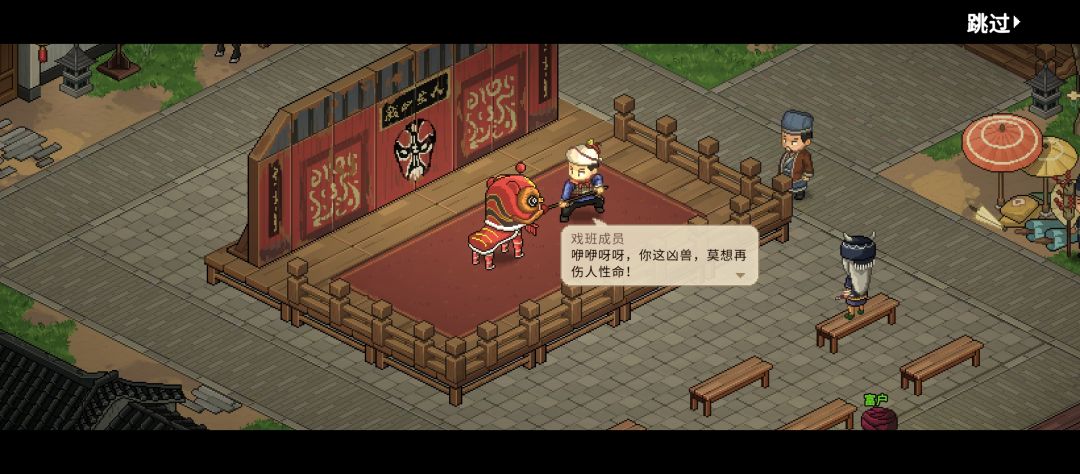 第一个线索,我们来到海神庙,里面有一个老奶奶跟他对话,他会让我们去找赌楼二楼的他儿子帮他赢回5万文,这是第一个线索