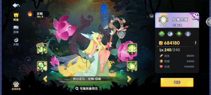 首先是花木兰,过第三章就送一张,足够第一天推本做主C,可放前排,伤害不俗,能抗能打能爆发,可以用到老。