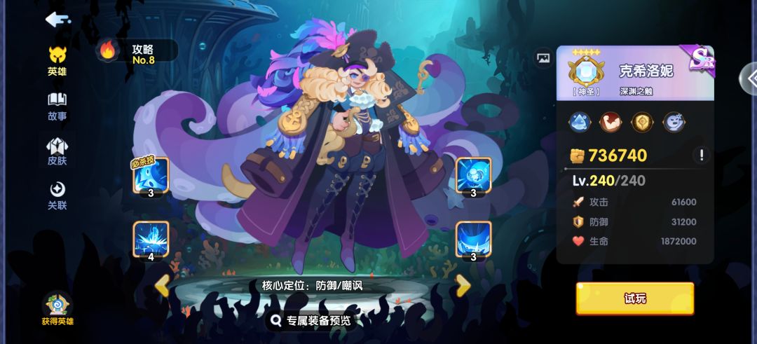 章鱼独特的骑脸嘲讽能很好的保护队友,本身硬度能很强,建议搭配水法食用。