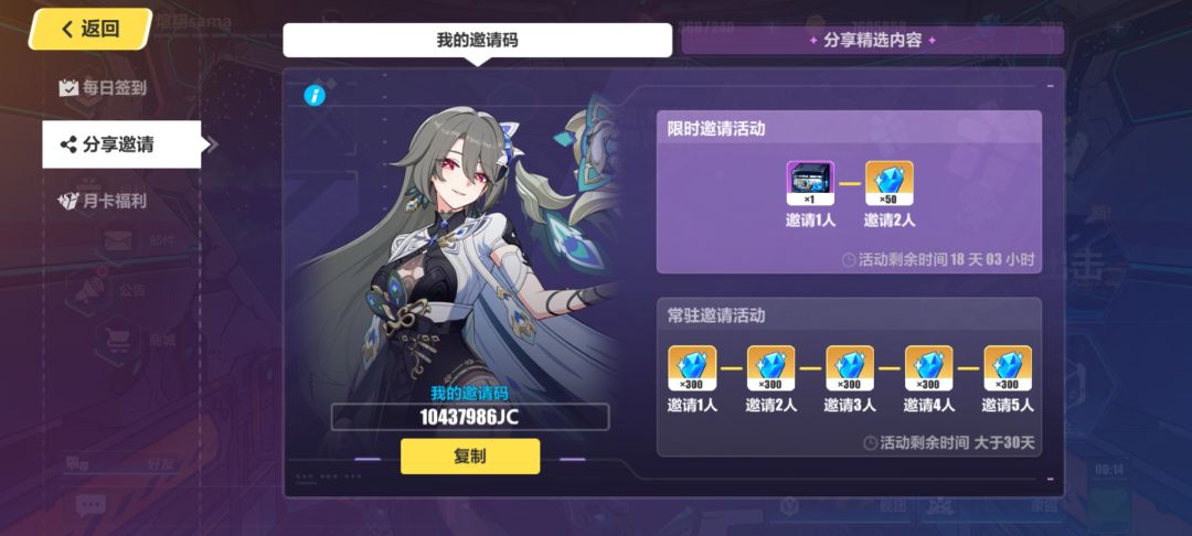 说实话,我这次能去第一梯队都是靠大月下的功劳,尤其是十二名那次。非常危险,当时半只脚在悬崖底下呢。推了姬子7年,但我每天都活在过去,德莉莎这次,真的给了我面向未来的勇气,如果人一定要走出来,那我会陪着德莉莎和姬子一起,迈向属于我们的明天!大家可以祝福一下我吗?谢谢。还有就是这个回归邀请码,能不能帮孩纸填一下,想要那个勋章,其他的倒是无所谓了,大月下硬生生的坚持到了薇塔来的那个时候,大家说,我应该回应她的心意嘛?我的选择有没有错误呢?