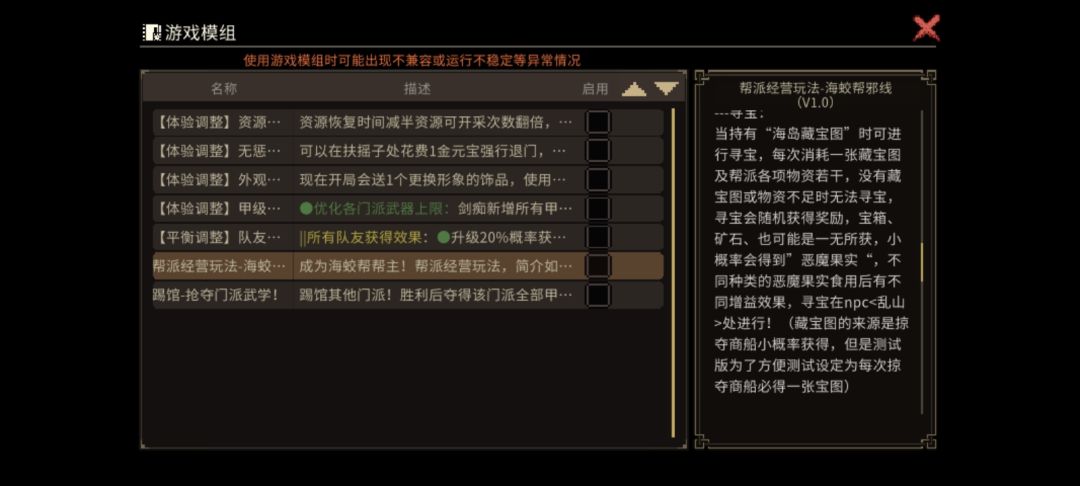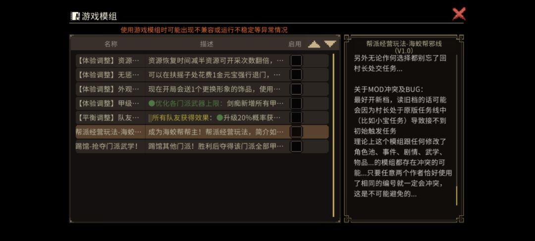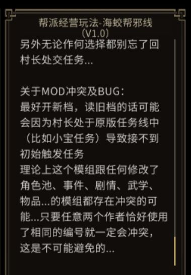 另外后面这个,也属于大型mod,还好作者和海蛟帮mod是同一个大佬。所以这个mod属于和海蛟帮同时使用,丰富玩法的配套mod。
