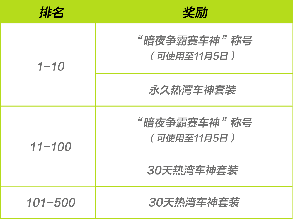 ● 暗夜争霸赛将进行三期比赛,参与比赛即可获得积分,单局比赛采用六人局单人竞速赛。