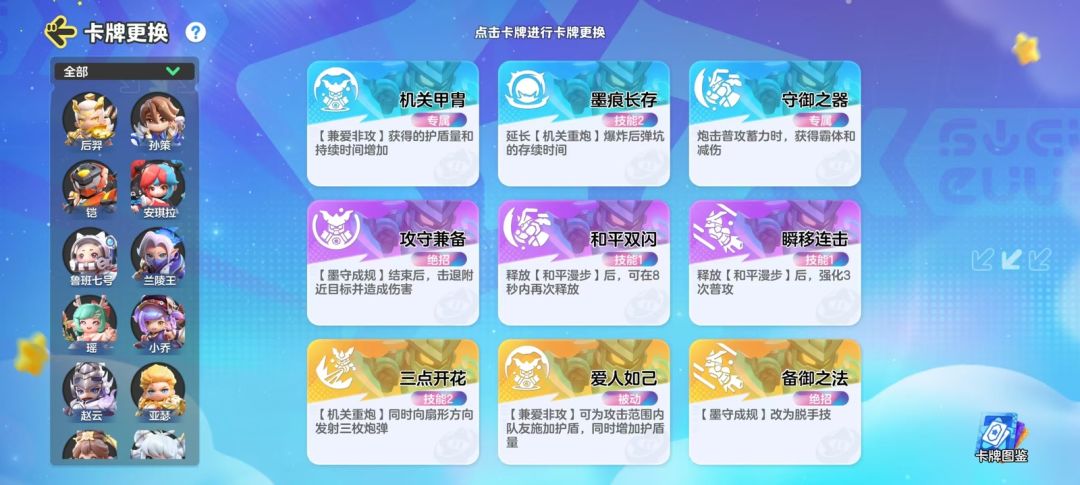 如果星宝想用墨子打辅助,则推荐这套卡牌组合:守御之器+攻守兼备+爱人如己。