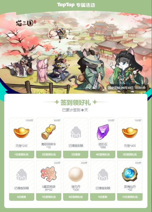 活动预告丨《猫三国》10月TapTap独家签到活动即将开启
