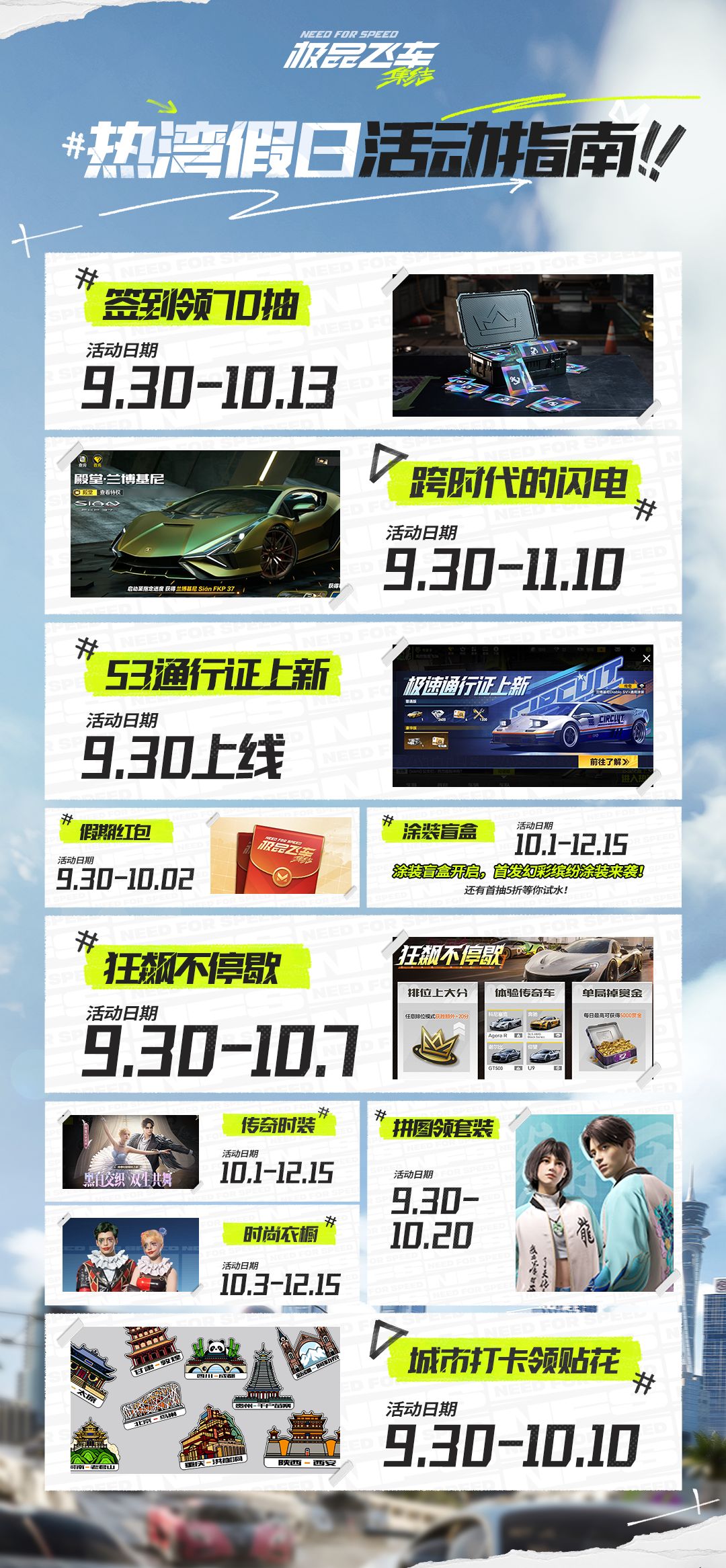 为了让赛车手们不错过每一个福利信息!薇拉特地准备了这份热湾假日活动指南