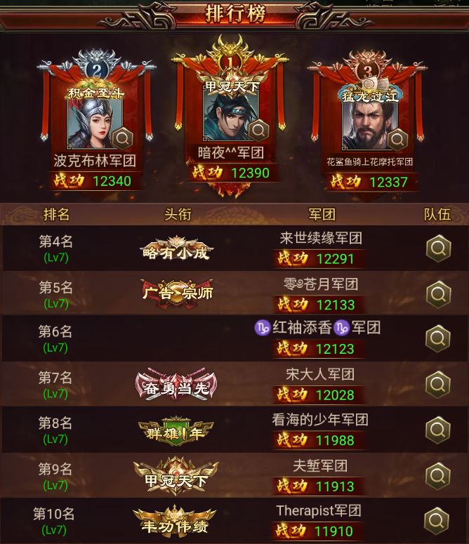 位列第二的 波克布林 军团在这次战役中也是大显身手,以 12340 的优异成绩拿下第二!