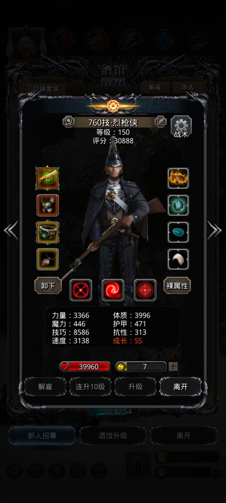 改装沉思者可以说是图41第一个提升点,有了保底85速魔石,对保底党打风暴会好很多,但依旧比较刷脸,wiki中蛮子伤害不如剑豪(我刷脸两天后得到的结果),而我的剑豪最高一次打到剩36w,实在是过于看脸,后浏览贴吧,发现“大王叫三毛”大佬的圣龙思路,略微尝试,一遍过。由于大佬只配了一张阵容图,并无属性与打法,故在此对大佬打法进行进一步解析与补充。