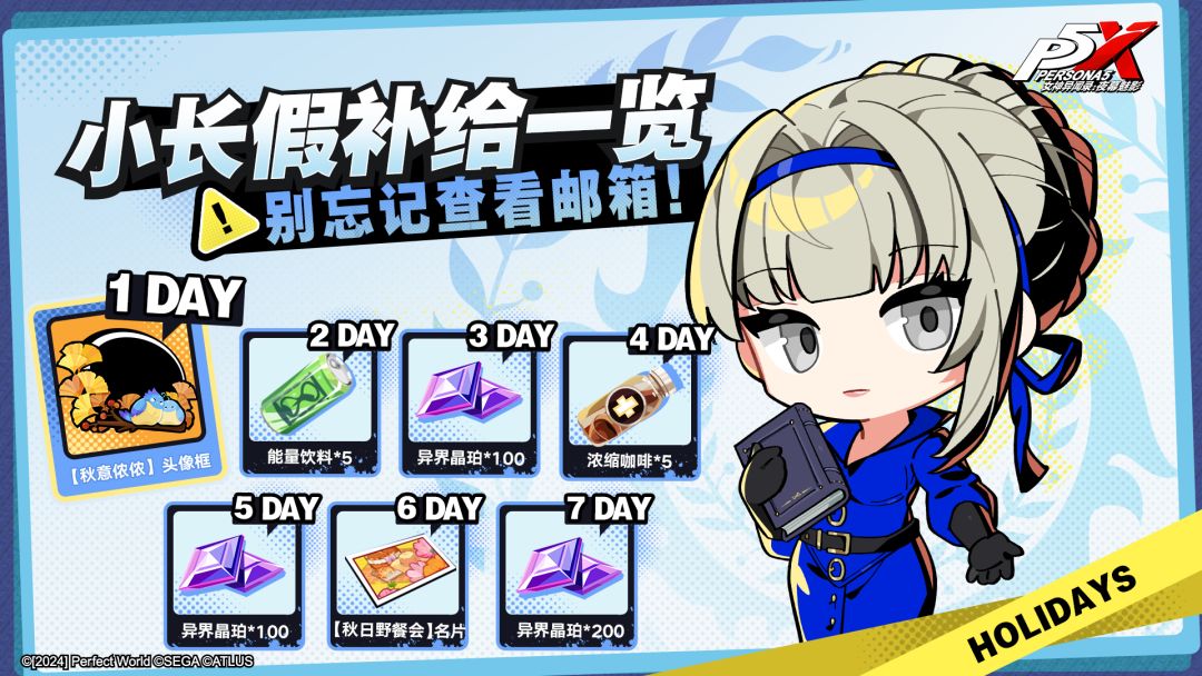 另外,10月1日~10月7日期间,我们也在游戏里给大家准备了假期特别补给,队长们别忘记登录查看邮箱!
