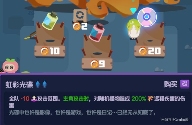 玉菜队伍需要叠加远程伤害和攻击速度,游戏后期主角攻击速度极快,弹道数量也多,购买虹彩光碟可以快速清屏,增加爆发伤害。