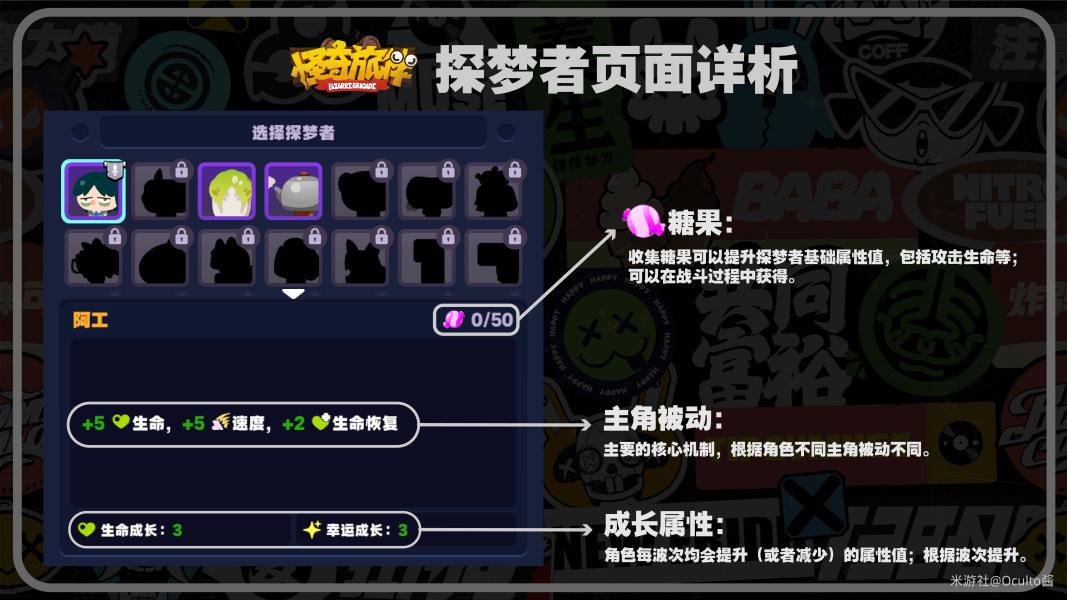 糖果:收集糖果可以提升探梦者基础属性值,包括攻击生命等;可以在战斗过程中获得。