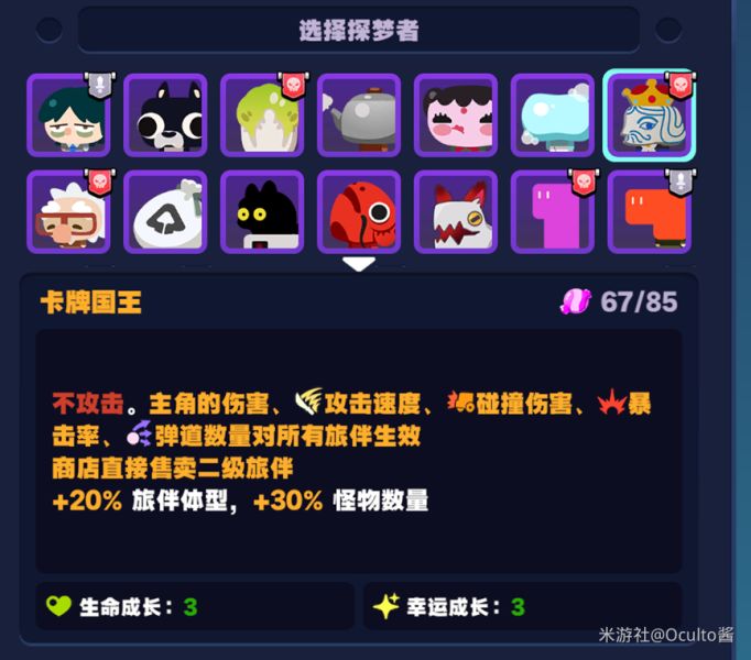卡牌国王自身不攻击,而是将自己的属性共享给自己的旅伴。所以更加需要携带强力武器的旅伴(例如关刀、三叉戟、双头剑、石中剑等),如果商店内刷新的旅伴大都携带气球、锤子这类伤害较低、更加倾向于辅助的武器,可以选择重开。