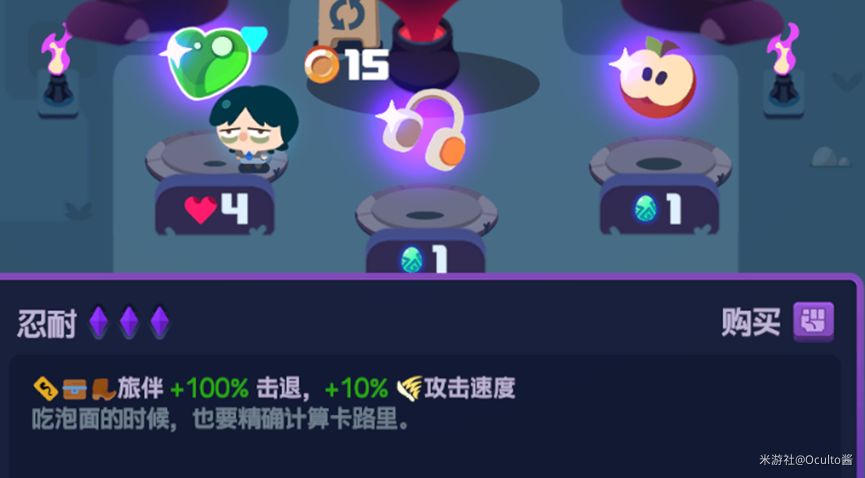 阿吞角色非常吃宝箱羁绊加成,忍耐可以增加宝藏旅伴的击退和攻击速度,是阿吞流的主要道具。