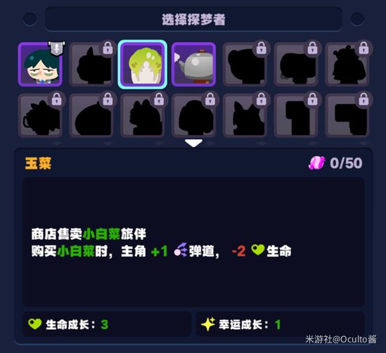 玉菜只推荐购买小白菜旅伴,其他旅伴均可以通过合成获得,且玉菜购买小白菜时可以提高弹道;增加主角的攻击范围和攻击伤害。