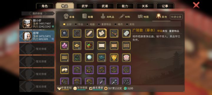 我这是不是卡BUG了?没有给哑琴治疗内伤的选项啊?摸金门已经被我灭了广陵散也已经拿到了这是BUG么?