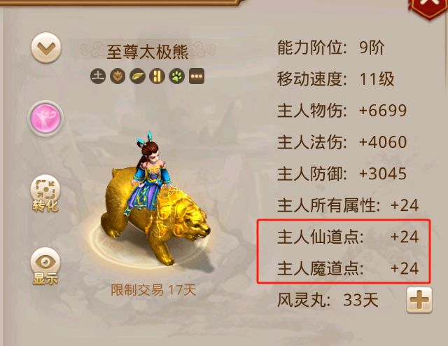 ②坐骑等级或者坐骑阶位的影响,要知道人物坐骑是根据阶位和等级来对人物进行属性加成的,这里面的其中一个就是仙魔点属性加成,阶位、等级越高的坐骑,给予的加成就越多。如果道友的仙魔点加成比别人低,也会影响实际输出。