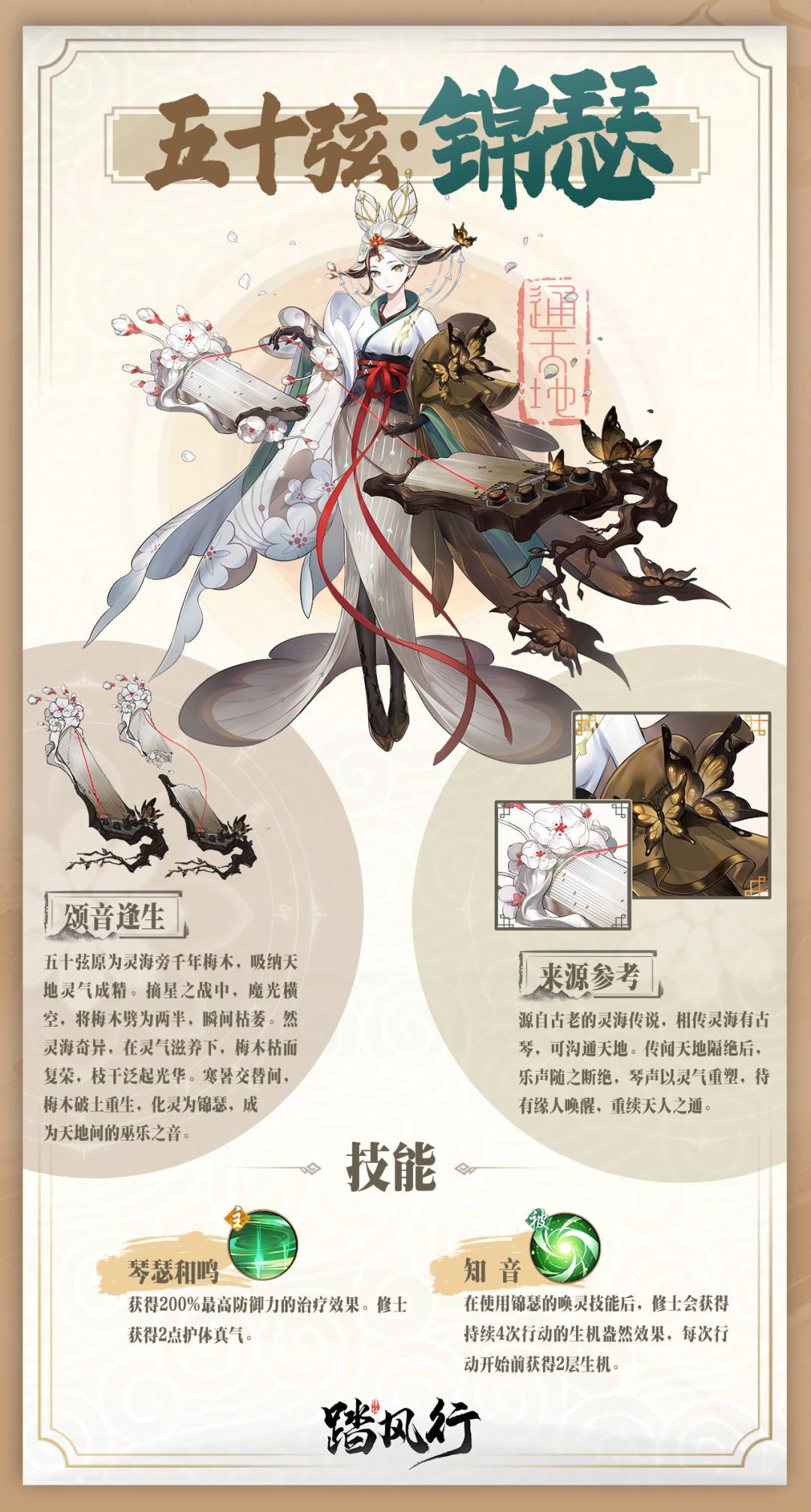 源自古老的灵海传说,相传灵海有古琴,可沟通天地。传闻天地隔绝后,乐声随之断绝,琴声以灵气重塑,待有缘人唤醒,重续天人之通。