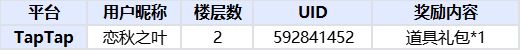 恭喜以上赢得道具大礼包的果宝!