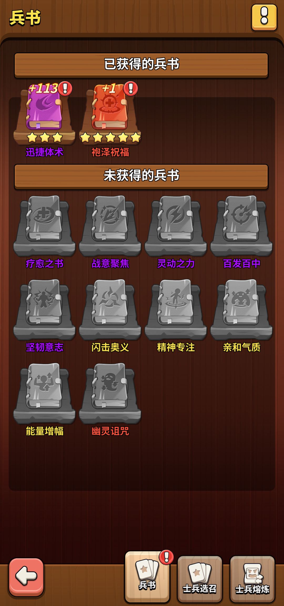 士兵在研习兵书时,即可获得对应的兵书属性加持。