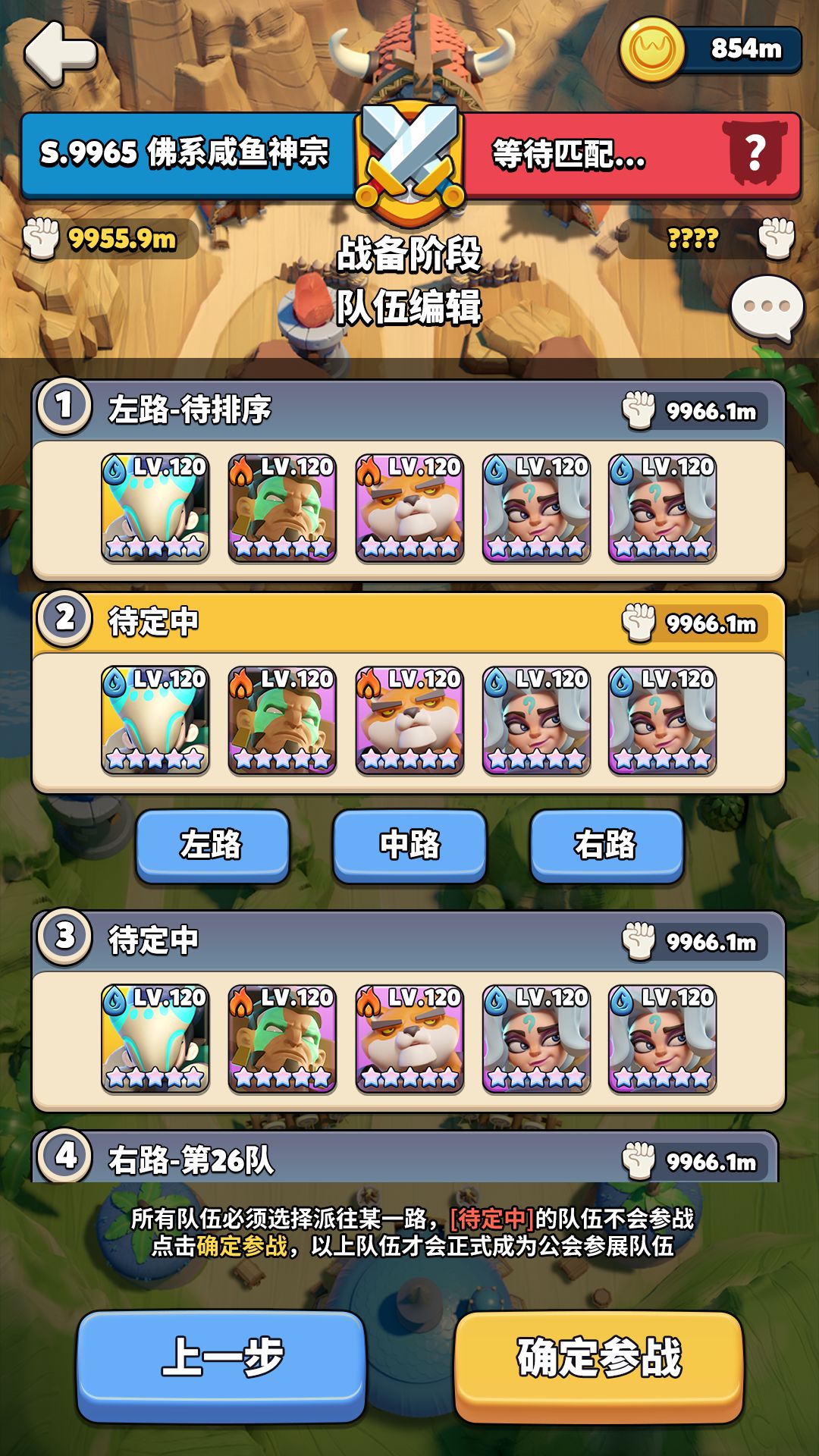 队伍可以自行选择驻扎在左、中、右三路的其中一路,不能重复驻扎。