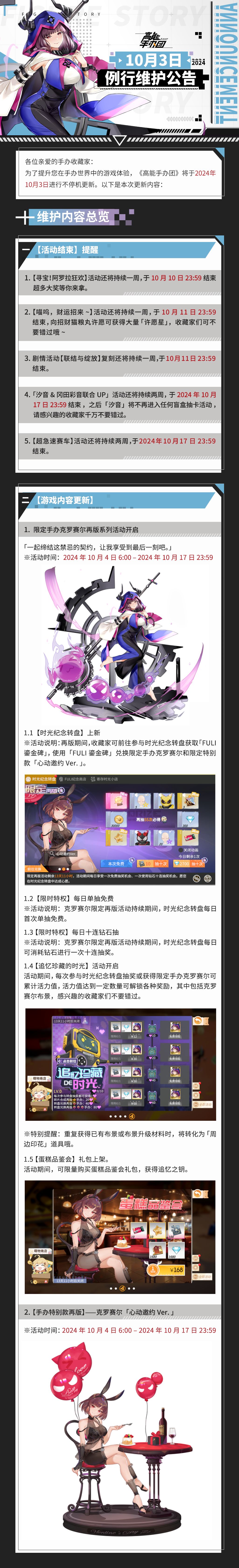 各位亲爱的手办收藏家:为了提升您在手办世界中的游戏体验,《高能手办团》将于2024年10月3日进行例行维护。详细公告内容请点击下方图片查看