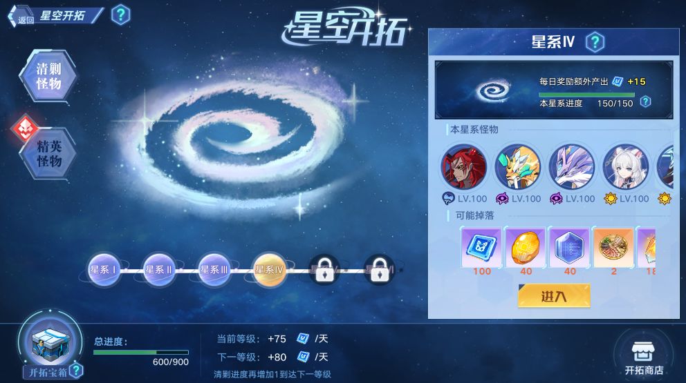 本周维护更新后星空开拓·清剿怪物将开放星系Ⅲ、星系Ⅳ。
