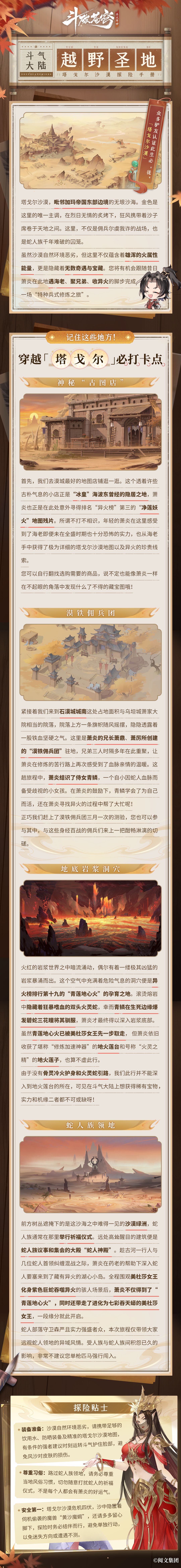 跟随萧炎收服“青莲地心火”的历程,一起去沙漠完成一场“特种兵式修炼”之旅~