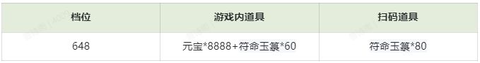 1.线下扫码8发(即648*8=5184),可免费定制武将外观,必须为购买符命玉箓,购买其他道具不算入此活动。