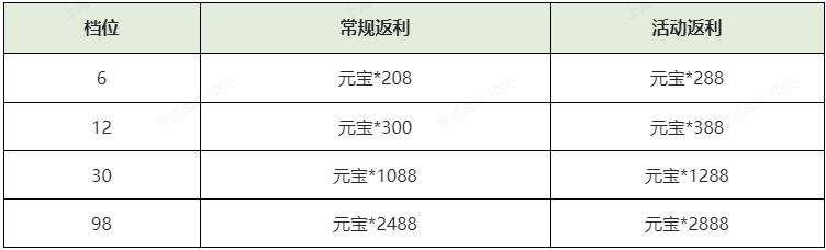 活动详情:活动期间月累充以下档位奖励升级,档位提升!