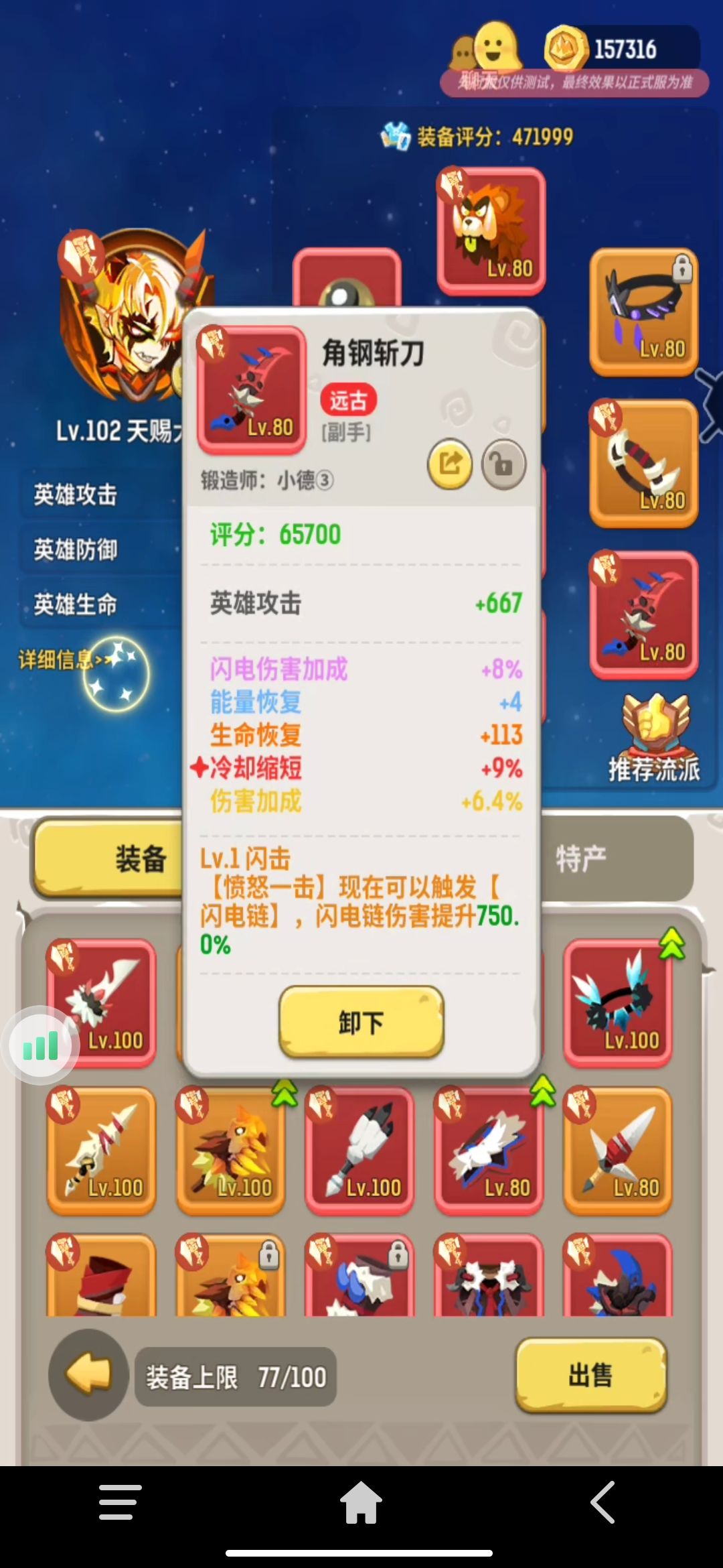 核心3件,主手基础攻击630,副手闪电链750%,头600%
