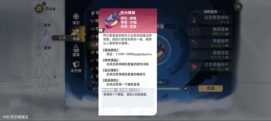 打造装备-阳光赐福可以用到老,暂时好像没发现加能量或暴击的戒指。