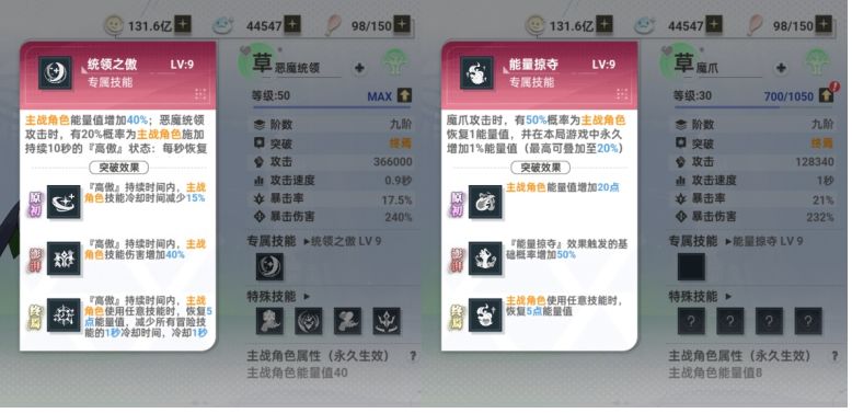 以上是1095雷属性,配队零+拉比+希尔(新增:希尔换雅更优),宠物菲尼克斯(西王之赐终极技能+5,没带贝丝贝拉光与暗之书没用)+恶魔统领(本体无数书)+魔爪(终焉无书)。装备词条能量12+水属性24+生命值。套装4星空够用。唯一需求是本次活动武器古皇兵装,用来暴击转能量提能量上限。卡片带的能量值+40%,此词条优于卡片本身。