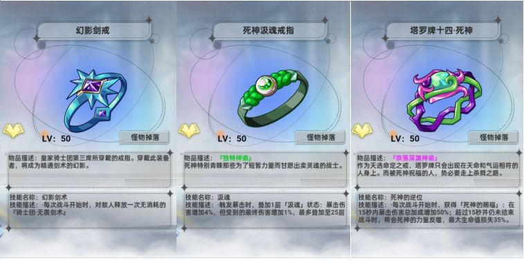 戒指前期可直接剑戒,490后换爆伤两件套。