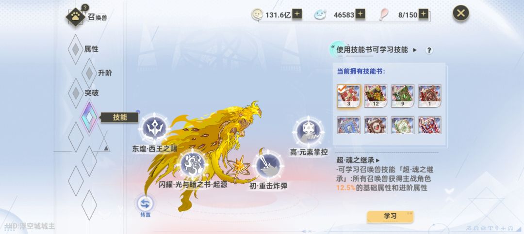 4.召唤兽非常简单,恶魔统领+魔爪+其他。恶魔统领本体就行,捕获球优先抓满6系魔爪。白嫖的红魔方直接拉菲尼克斯或诡秘之子,推荐菲尼克斯,更百搭。技能书先用普通的开四个格子,然后上本活动能量书。普通技能书随意了,跟不上版本提升有限。