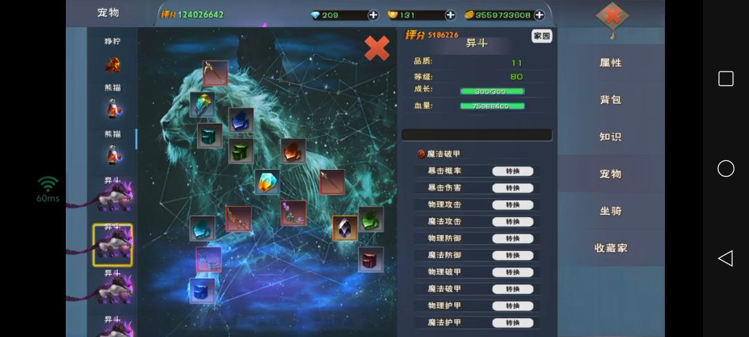 如何培养宠物,喂饱口粮,等级用丹药喂满,技能生满级,就是开星座,升级图腾物石,图腾魔石,元素水晶,这三样需要去熔炼炉合成,需要一颗八级元素石头,快八万颗月辰碎片,两颗黑玺水晶,若干胡萝卜神圣果,星座如何开启如图所示