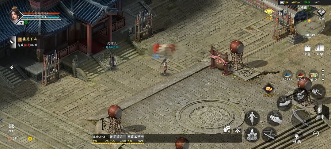 练武功,护体,步法,心法,需要残页,残页的获得方法打怪掉落“遗失的行囊”,行囊可以开出功法残页,有了残页就可以找导师去兑换整本功法。整本功法可以学习!学了就可以找武馆长进去练功房练功了。