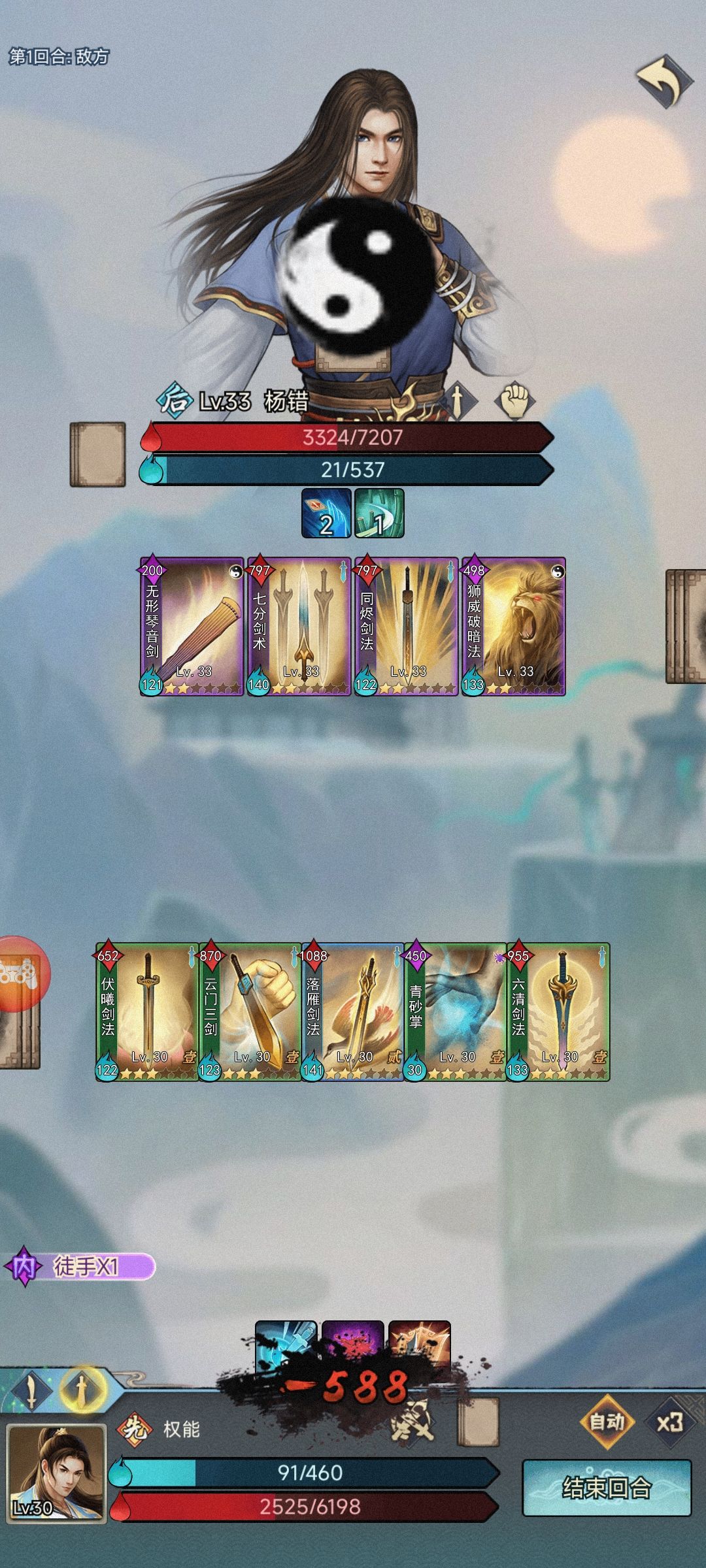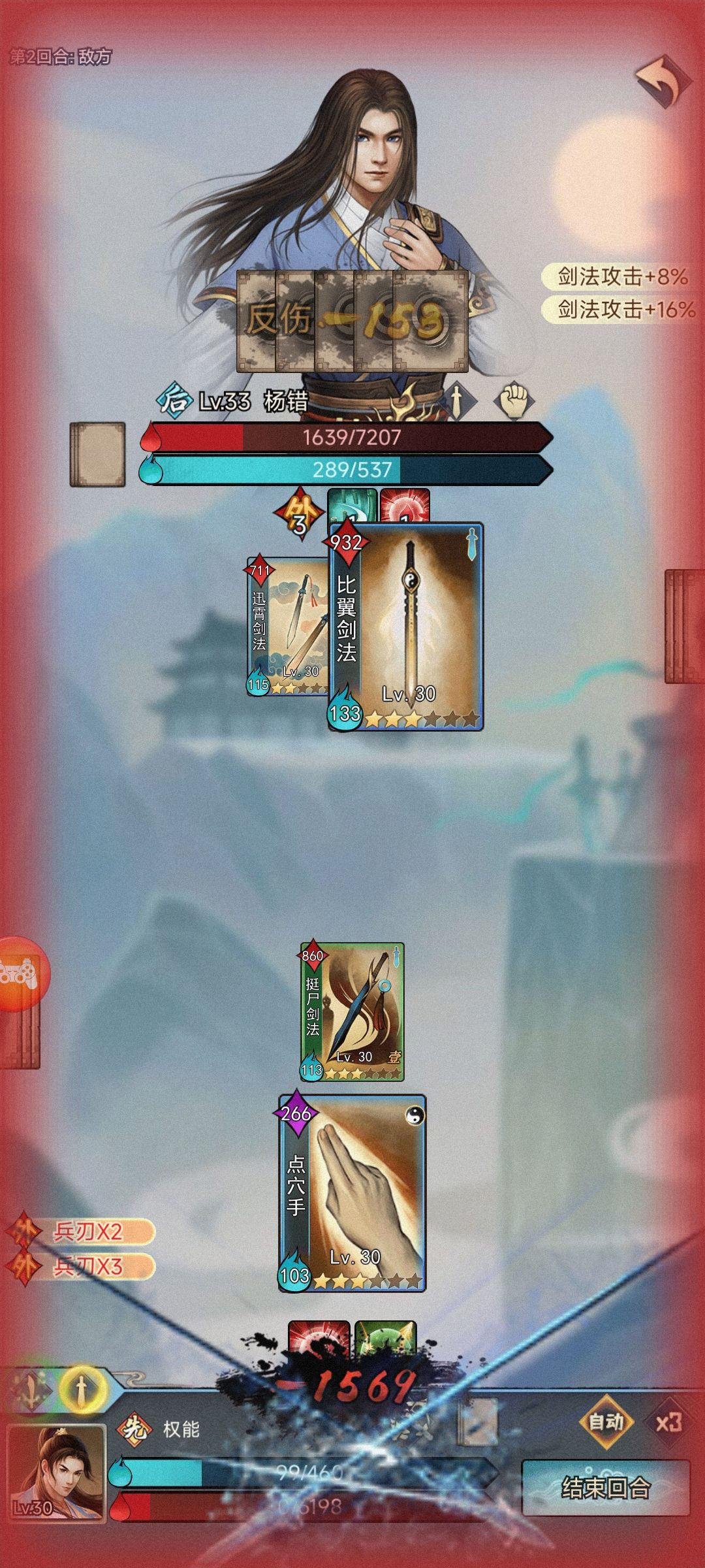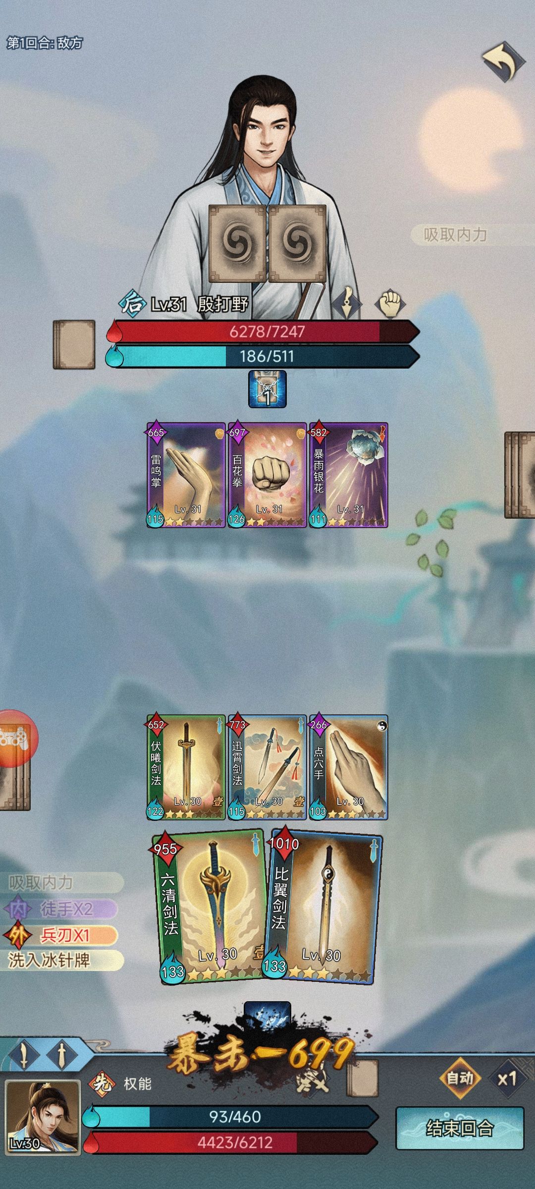 直接看图,开局用剑,被拳和暗打的生疼,决定转属性为刀和剑,刀克制拳和暗,结果才悲催,屁用没有,继续被拳暗按着打,另外因为有刀属性,直接被剑按着打!