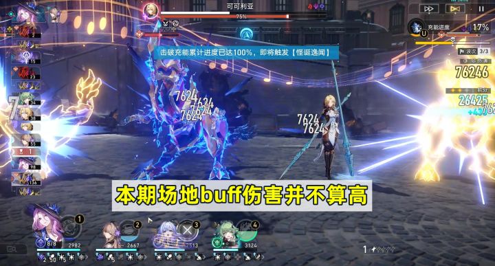 本期场地buff为击破敌方弱点时进行充能,充能达到6点后对随机敌方造成10次固定数值的伤害。也就是说,只要能快速击破敌方弱点(对应敌方弱点的队伍或者击破队等)就能频繁触发场地buff,不过这次的场地buff伤害并不算高,所以关键还是得看自身的配队选择和练度。