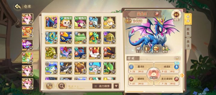 但我们能看出来,目前的大部分BOSS都能用老虎过,所以开局选老虎打得会很舒服。但选其他的也不要慌,选玲珑的也很好,葱天帝可以拿下玲珑全部进化石,就不存在老虎玩家开局因为练度卡进化的情况,把资源给玲珑也就不需要再花资源在海王和青瓷龙上,作为主宠的她是目前水系输出天花板,然后再用玲珑过老虎,稍微养一养老虎(即便还是烈焰虎)就能打风廉喵影白虎,毕竟克制,练度要求不高,然后用玲珑还能过朱雀。