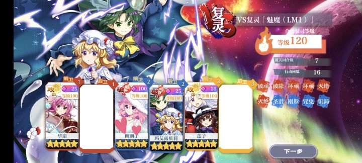 神绮当时出的时候,因为正值入坑不久的时候,所以一张都没拿(其实因为懒),现在补上好吧,也是一遍过,贵限阵容就是